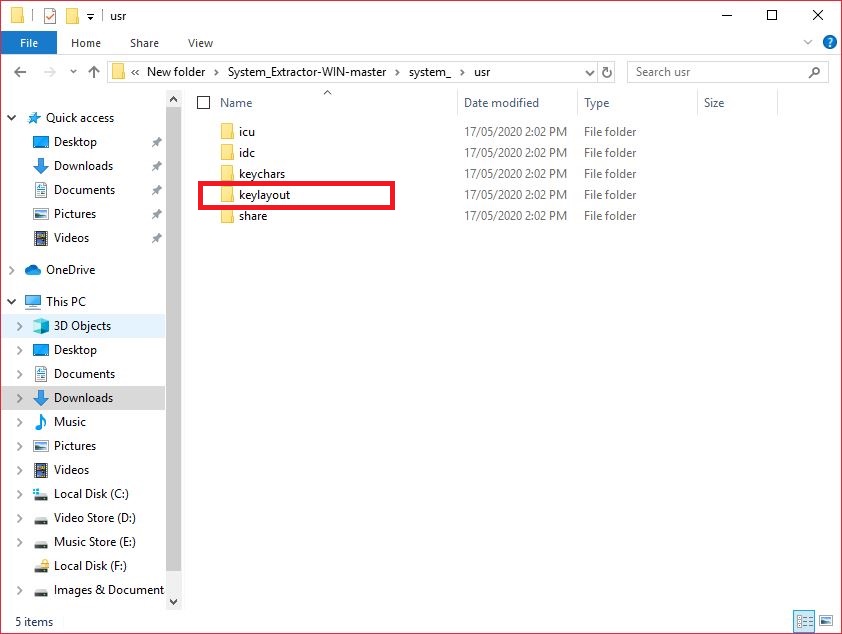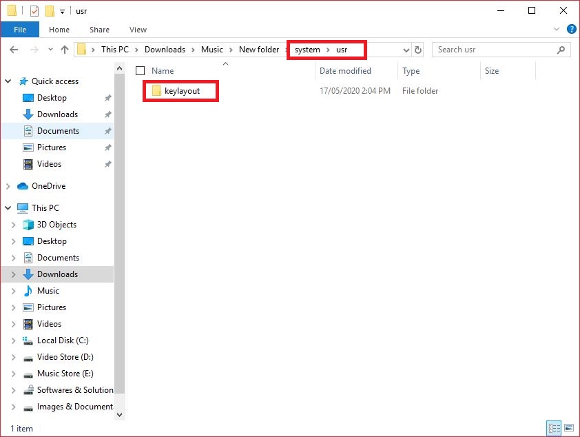 Step 2: Create "system" inside that Folder "usr" and Move "keylaout" Folder there.
