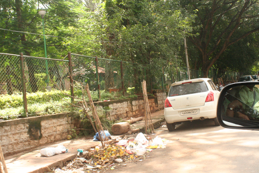 Here also the garbage was dumped and the parking of vehicles in a hap hazard manner made it difficult to cycle in the area.
