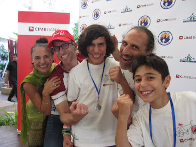 mounted our bikes, and slowly pedaled to a place where we could rest. We got