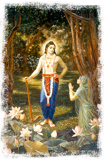 О Верховная Личность Бога! Ты в полной мере обладаешь всеми шестью достояниями. Забыв о том, что Ты всемогущ, я ослушалась Твоего приказа и совершила великий грех. Но знай же, о Господь, что отныне я безраздельно предана Тебе. Ты так любишь Своих преданных, поэтому прости мою дерзость и все, в чем я виновна перед Тобой. Яви Свою неизъяснимую милость и отпусти меня».