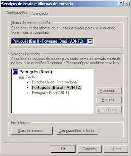 quando volta para a janela anterior coloque como idioma de entrada padrão o Portugês (brasil) Portugês (brasil ABNT2)
