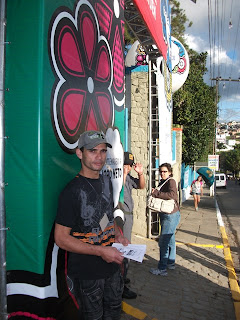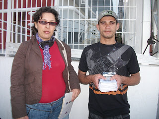 Hélio Brasil (Estudante e integrante do Cerimonial PJU Garanhuns) entregando os informativos em frente ao "Pau Pombo"