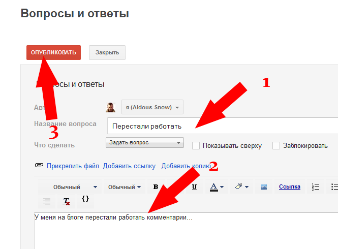 Затем вводим заголовок вопроса, описываем суть проблемы, отмечаем любым подходящим и публикуем своё сообщение:
