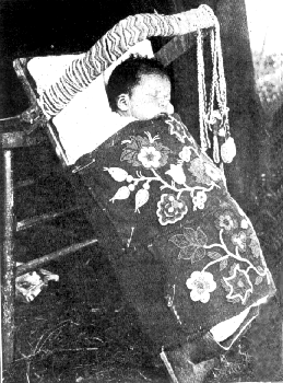 air playing with the feather on her cradleboard was entertained while