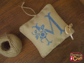 primeiro passo é bordar o monograma da dona do sachê. Eu utilizei o