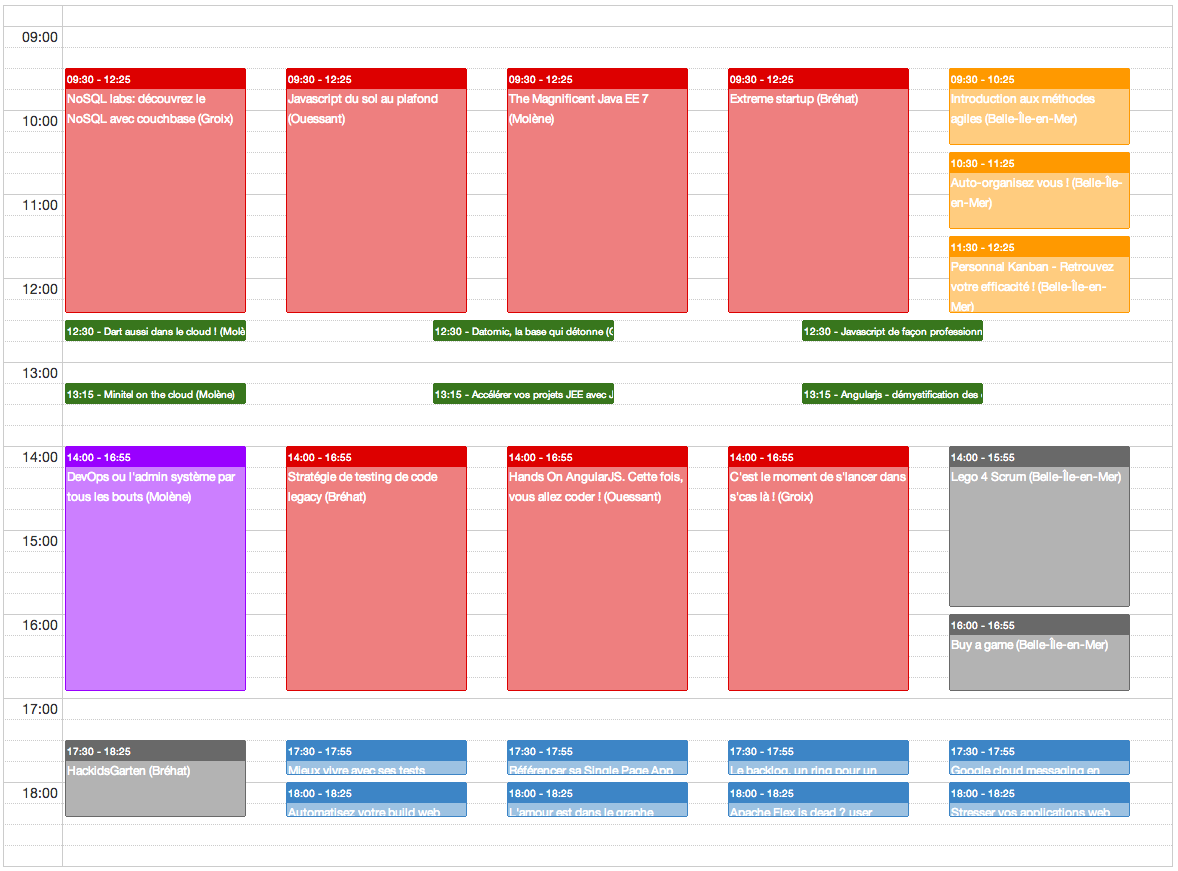 Enfin, nous vous rappellons encore le programme des 2 jours … que pouvez également consulter avec votre mobile sur voxxr.in ou bien plus classiquement récupérer la version PDF car, rappelons le, vous n’aurez pas d’accès WiFi.