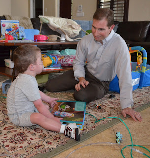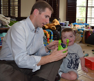 Jen's boss Mr. Troy came by for a visit when we had to cancel visiting everyone at FP&L on a couple occasions. Mr. Troy is also a heart warrior and has been praying for Caelen and keeping up through our blog. He brought Caelen some early birthday gifts, all Monsters University, and as you can see from the pics Caelen loved them! Thank you again Mr. Troy! We promise to make a visit to FP&L next month to say thank you, hopefully we can feed the turtles too.