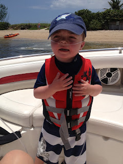 Caelen had a great time in FL in July. We were back for our annual trip and Caelen had a blast playing with his cousin Lily and meeting his new cousin, Baby James. We stayed with my sister Jennifer and her husband Noah and managed to drive them crazy. But that's what family is for, right? We got plenty of time in with Pop Pop (my dad) and Gigi too. We even squeezed in some time with my best friends Morgan and Jason Carpenter down in Boca, and Uncle Jason took Caelen and I on a boat ride. Caelen loved the boat and even got to help drive.