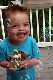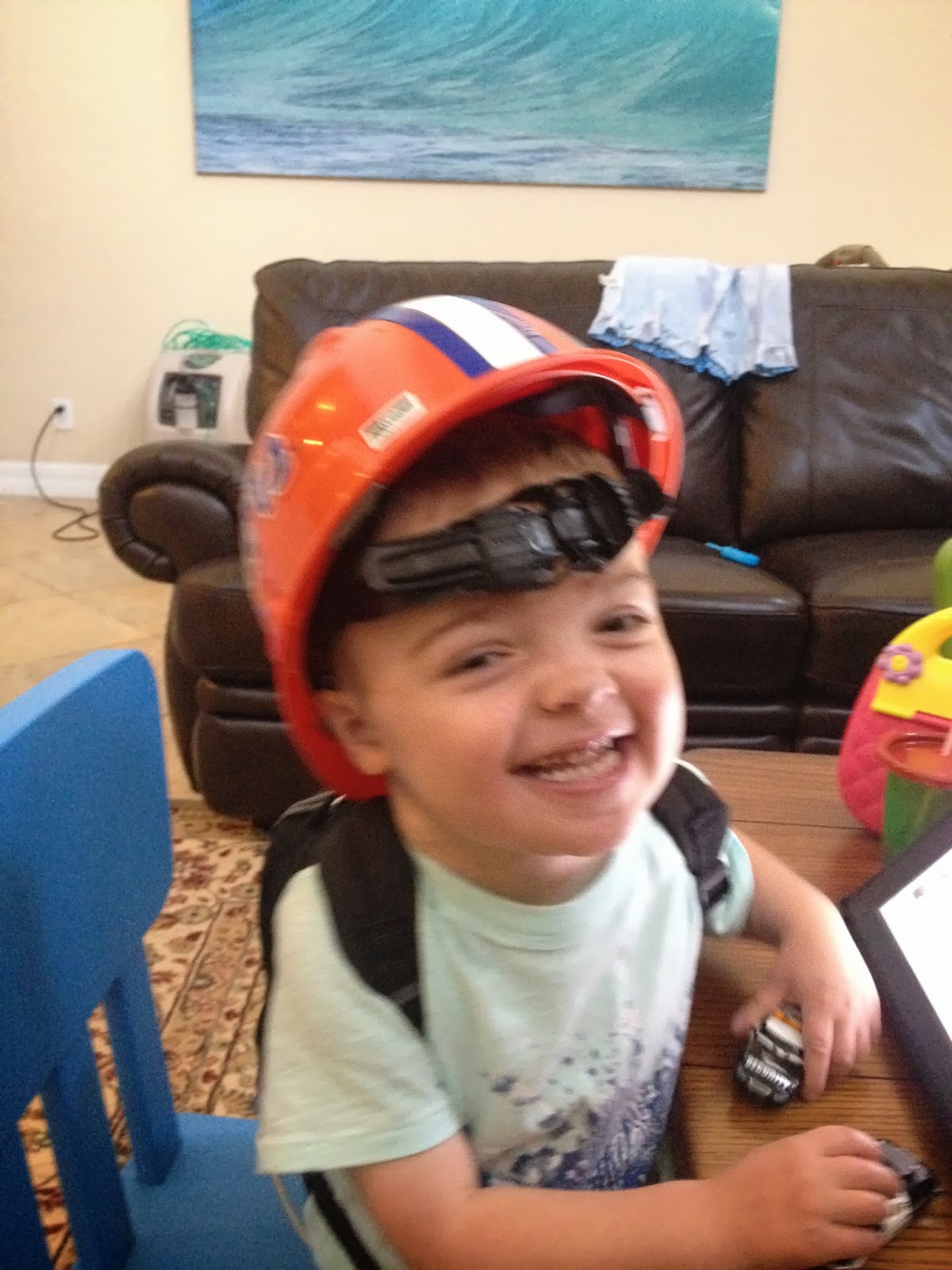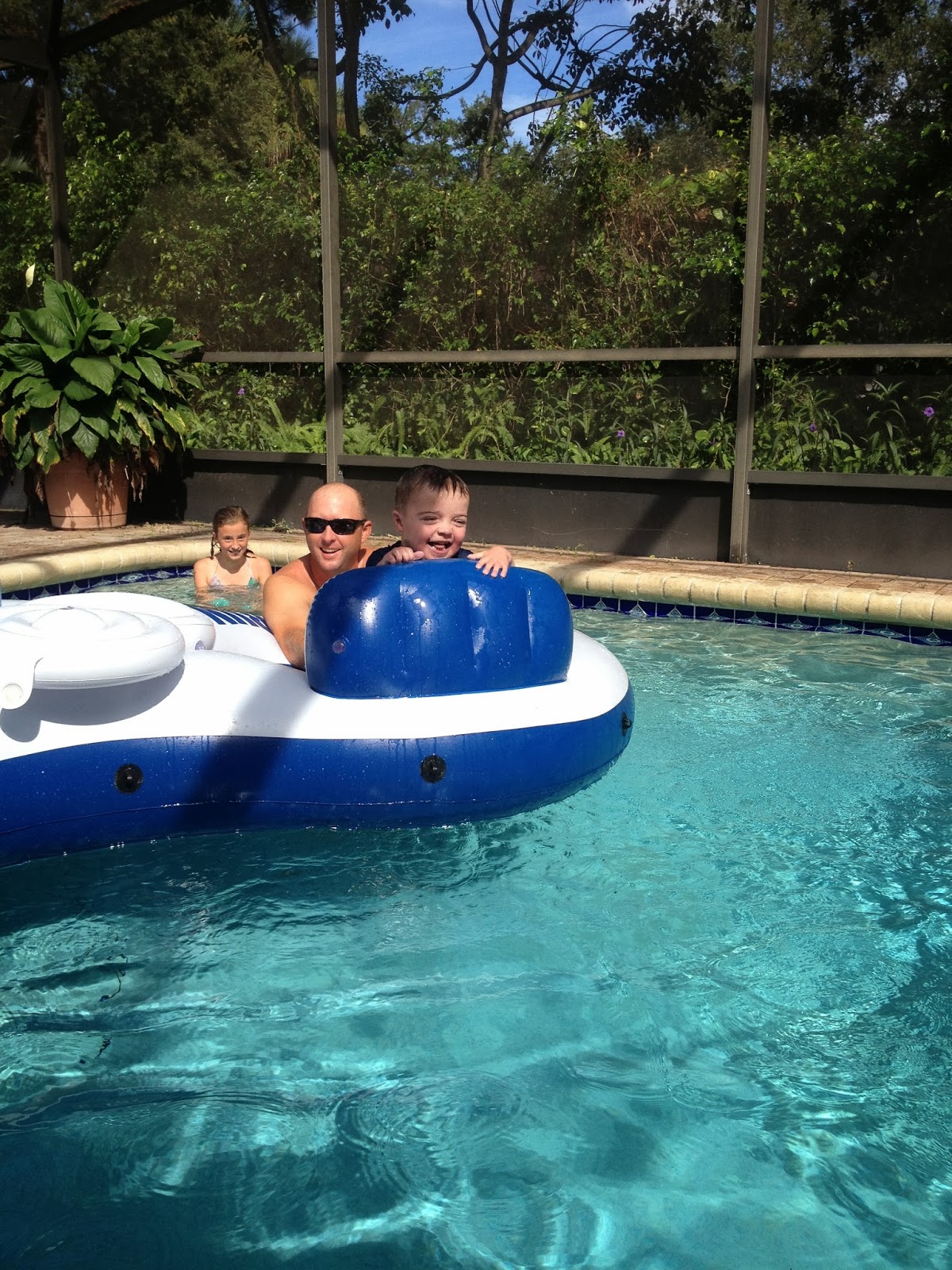 And now here we are exactly one year later. Caelen has traveled to Florida twice, even flying down one of the trips to be a ring bearer in my sister's wedding. One year ago today, the future was scary. We didn't know if Caelen even had a future. And now he's running around the house, singing and dancing to country music, playing cars on the floor, couch, walls and any surface he can find. He loves to go in the pool, ride his bikes and ride our dog Brid. Caelen loves to give kisses and hugs, and is a great snuggler. He's funny and smart as a whip, which gets him into trouble quite a bit.