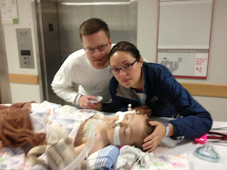 The first picture is of Caelen once he was on ECMO and cannulated through his neck, hence the scar on his jugular that some have noticed. The second photo I hate, but I remember one of the medical team insisting we take the photo because I was so scared that Caelen was not going to come back from the OR. Looking back, I'm glad she took the picture. It shows just how scared Martin and I were, and the hell that we had all been through in the last 12 hours. And the last photo was once Caelen had come back from the OR and cath lab, and the ECMO cannula had been moved out of his neck and into his chest.