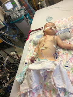 Today marks one year since Caelen coded after his Fontan and went on ECMO (heart/lung bypass machine) for life support. This was by far the scariest day of our lives. I've never shared photos before of Caelen on ECMO because even I didn't want to relieve what had happened. But one year later, I'm glad that I have the photos to see how far Caelen has come since those very dark hours. Fair Warning, these pictures are hard to look at, so I don't blame you if you want to skip over them.