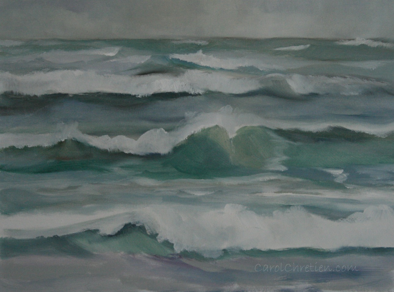 I have done countless sea scapes with Dalmatians in them but this one is just the sea and a foggy sky.