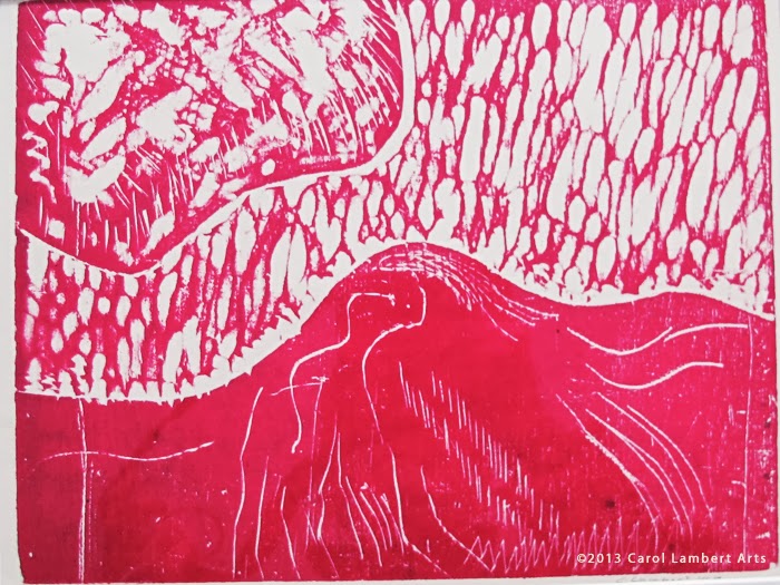 I got into printmaking in college, many years ago. I still have some of those pieces, here is one, a woodblock from about 1968.