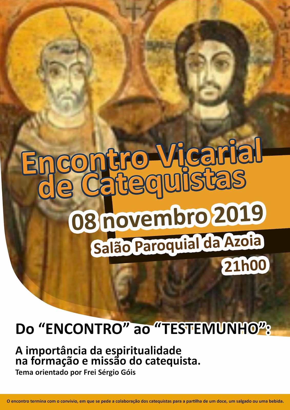 No dia 8 de novembro realiza-se o encontro vicarial de catequistas da vigararia de Leiria. Esta iniciativa a ter lugar no salão paroquial da Azoia vai contar com a orientação frei Sérgio Góis e terá como tema “Do Encontro ao Testemunho: A importância da espiritualidade na formação e missão do catequista”.