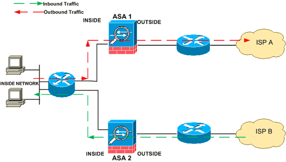 cuando el trafico regresa a través del ISP A o del ISP B. La mayoría de