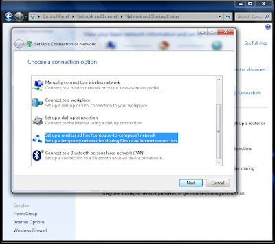 4. เลือกที่ Set up a wireless ad hoc (computer-to-computer) network