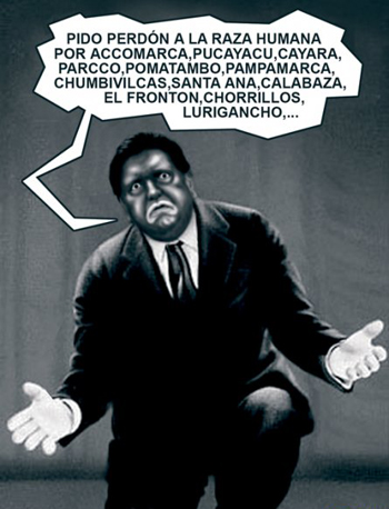 - Hijo, ¿qué te pasa? ¿por qué lloras? - ¡Perdóneme madre, he pecado! Estafe a 24 millones de peruanos, eche a mi mujer a cuchillazos de palacio y ahora por aliarme con los apristas he salido impunemente.... - No te preocupes, yo soy gay, me llamo Rafael Rey y voy a una fiesta de Halloween..