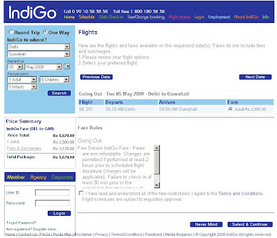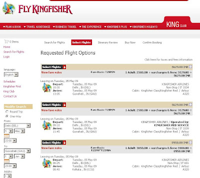 on May 5, 2009 have tickets priced at Rs. 5629/- inclusive of all