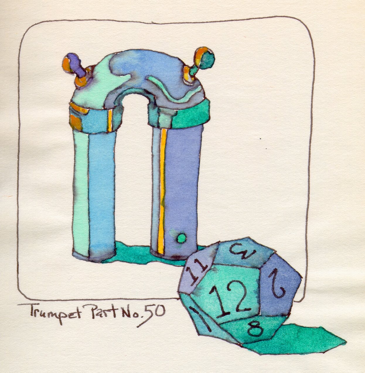 [Chris Carter Art ............. Smaller Than A Breadbox] Trumpet Parts No. 50 with Twelve Sided Die