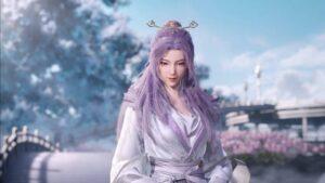 Không để các nàng phải đợi lâu, đại môn mở ra giữa hỗn độn, nữ tử mang khăn lụa che mặt, thân thể trong bộ cung trang màu tím cao quý tuyệt luân chậm rãi hiện thân.