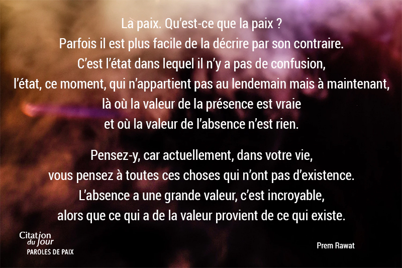 celles de personnalités qui ont marqué leur temps. Prem Rawat rappelle que la paix que nous recherchons se trouve déjà en nous.