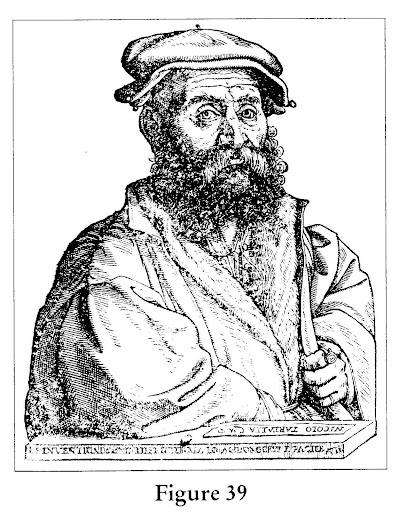 Niccolo Tartaglia (figure 39) was born in Brescia in 1499 or 1500. His original surname was probably Fontana, but he was nicknamed Tartaglia (meaning "the stammerer") because of a saber cut to his mouth that he had received at age twelve from a French soldier. The young boy was left for dead in the cathedral in which he sought sanctuary, and he was slowly nursed back to health by his mother. As an adult, he always wore a beard to hide the disfiguring scars. Tartaglia came from a very poor family. His father Michele, a postal courier, died when Niccolo was about six years old, leaving the widow and her children in heartbreaking misery. Tartaglia had to stop his studies of reading and writing of the alphabet upon reaching the letter k because the family ran out of money to pay for the tutor. In his later retrospection, Tartaglia described the completion of his education: "I never returned to a tutor, but continued to labor by myself over the works of dead men, accompanied only by the daughter of poverty that is called industry." In spite of these ill-starred circumstances, Tartaglia proved to be a talented mathematician. Eventually he moved to Venice in 1534 as a teacher of mathematics, after having spent some time in Verona. In his mathematical memoirs Tartaglia states that in 1530 he managed after considerable effort to solve the cubic equation x^3 + 3x^2 = 5. This was a challenge posed to him by a fellow Brescian, Zuanne de Tonini da Coi. Rumors of Tartaglia's claim that he was able to solve cubics must have reached the ears of Maria Fiore, but the latter greeted the information with skepticism, thinking that Tartaglia was bluffing. Confident in his ability to defeat Tartaglia due to his secret knowledge of dal Ferro's solution, Fiore issued the challenge. Shortly afterward, Fiore and Tartaglia reached agreement on the precise conditions of the contest. Each side was to propose thirty problems for his opponent to solve. The problems were they to be sealed and deposited with the notary Master Per Iacomo di Zambelli. The two contestants fixed a term of forty to fifty days for each to attempt to solve the problems, once the seals were opened. They agreed that whoever solved more problems would be considered the winner, and in addition to honors, would receive a handsome reward suggested for each problem (according to some sources the loser was supposed to pick up the tab for a feast attended by the winner and thirty of his friends). As it turned out, Fiore indeed had only one arrow to his bow—all the problems he put forward were of the form for which he knew the solution from dal Ferro, ax^3 + bx = c. Tartaglia's list, on the other hand, contained thirty diverse problems, each one of a different kind, in his words, "to show that I thought little of him and had no cause whatever to fear him."