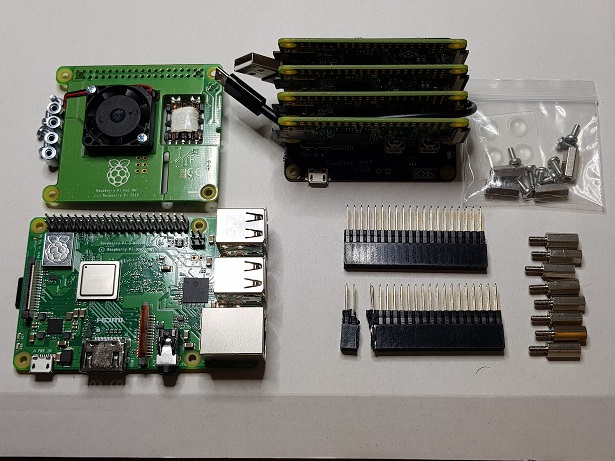 The normal Raspberry Pi 3B+ and SD card.
