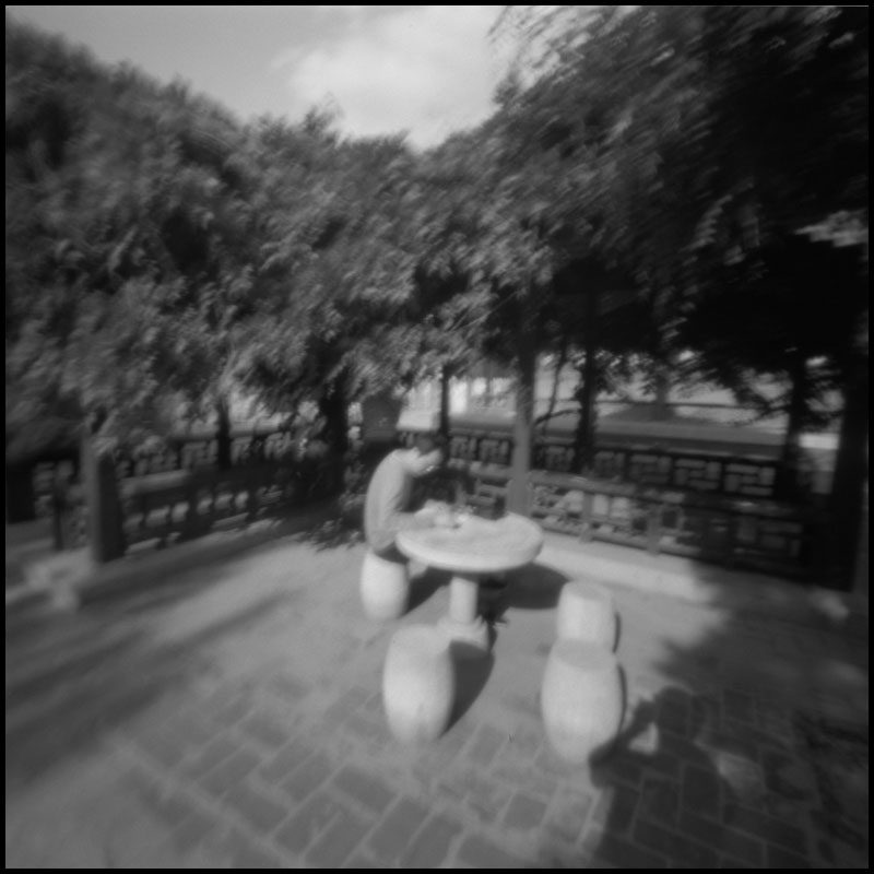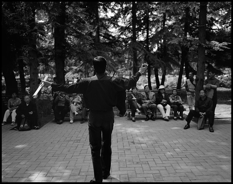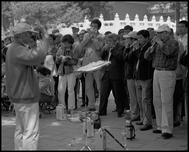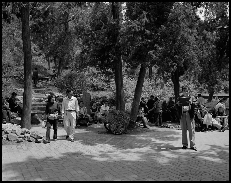 大家伙在树荫下坐着,听一会儿,休闲得很,这张反差有些太大,曝光不够