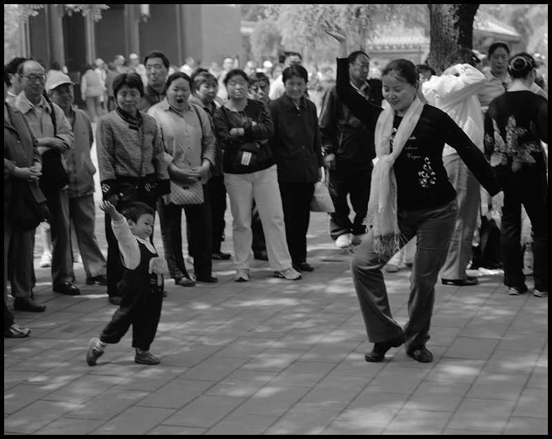 景山算是老年人活动很集中的地方,老人们载歌载舞,小孩子学模学样