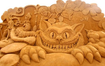 A sand sculpture entitled "Alice and the Caterpillar" carved by Christina Mija from Australia is seen at the Creepy Crawlies Sandsculpting Exhibition on the Frankston waterfront on December 26, 2010 in Melbourne, Australia. International sand sculpture artists from around the world teamed up with their Australian