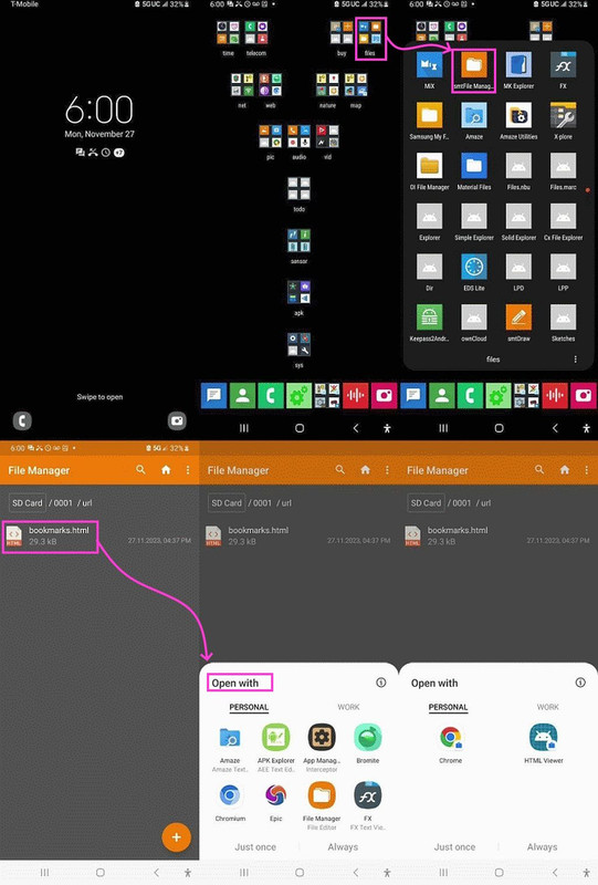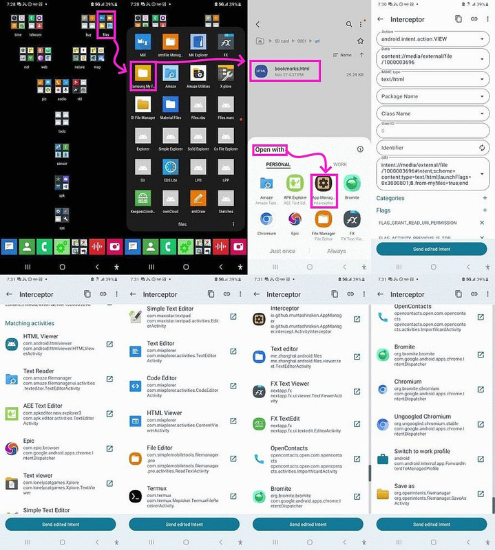 >> uses intents and fails to allow html files to be opened. The reasons have