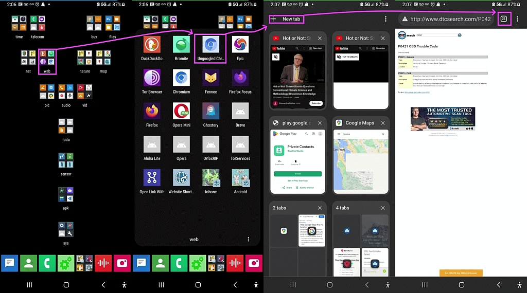 >screenshots, there are tabs in the Samsung Internet Browser.