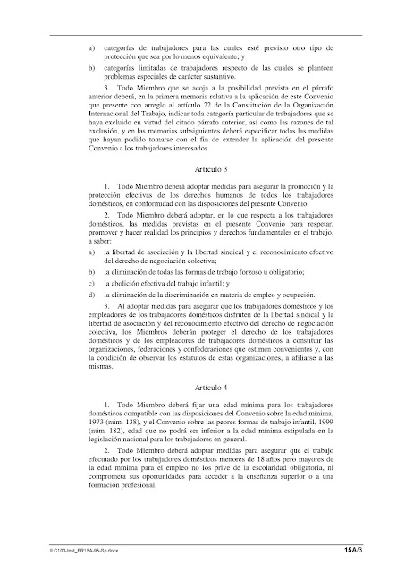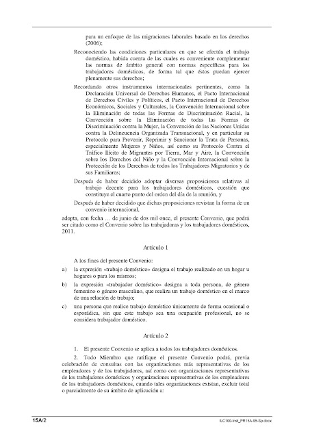 El Convenio que lleva el número 189 fue adoptado el 16 de junio de 2011 por la Conferencia General de la OIT celebrada en Ginebra.