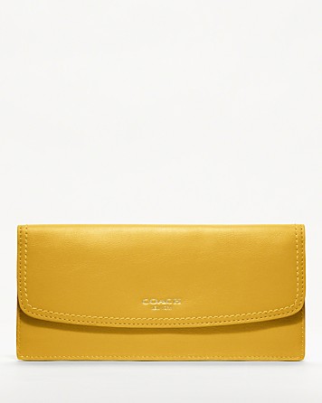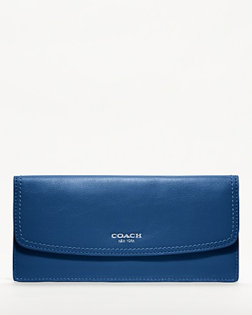 This classic envelope design showcases the beauty of heritage Coach leather--smooth, glove-tanned cowhide that will develop a rich patina over time. Hand-finished pockets and card slots inside keep necessities beautifully organized.