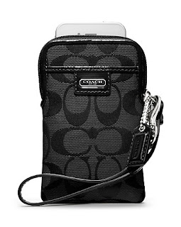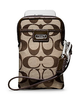 Signature C jacquard fabric adds luxurious texture to this padded, portable case. Hand-finished with leather trim and designed with pockets for cords, cards or cash, it fits iPhones, Droids, small cameras and music players, and comes in its own gift box.