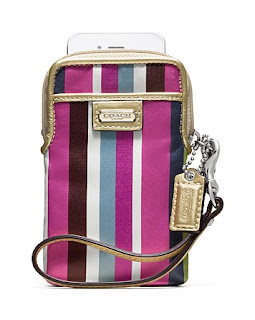 Bright variegated stripes and hand-worked metallic leather update our popular padded case for phones, cameras and music players. Extra pockets inside and out provide compact storage for cards, cash and headphones; a signature box makes it a perfect gift.