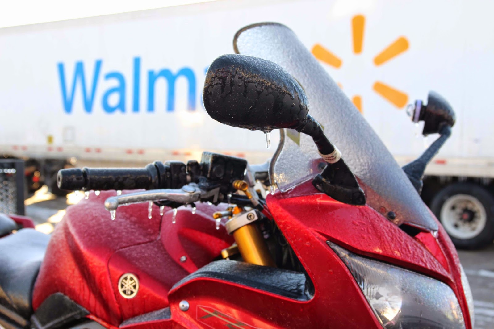 Right now I'm having breakfast in a Starbucks in Midland Texas, across the street from the RV park of last resort, Walmart. Yesterday the weather had gotten worse and worse, rain becoming heavy rain, then snow, then freezing rain, then sleet. That's when the carnage started. First there was a tractor trailer on it's side in the ditch, then half an hour later another, a few minutes later another, and quickly it began to look like the set of a Mad Max movie. Vehicles of every description were strewn all over the landscape with varying degrees of destruction. There was even what was left of a pre-fab house still attached to what was left of the flatbed that had been carrying it that looked like it had rolled several times on it's way to the bottom of a ravine.