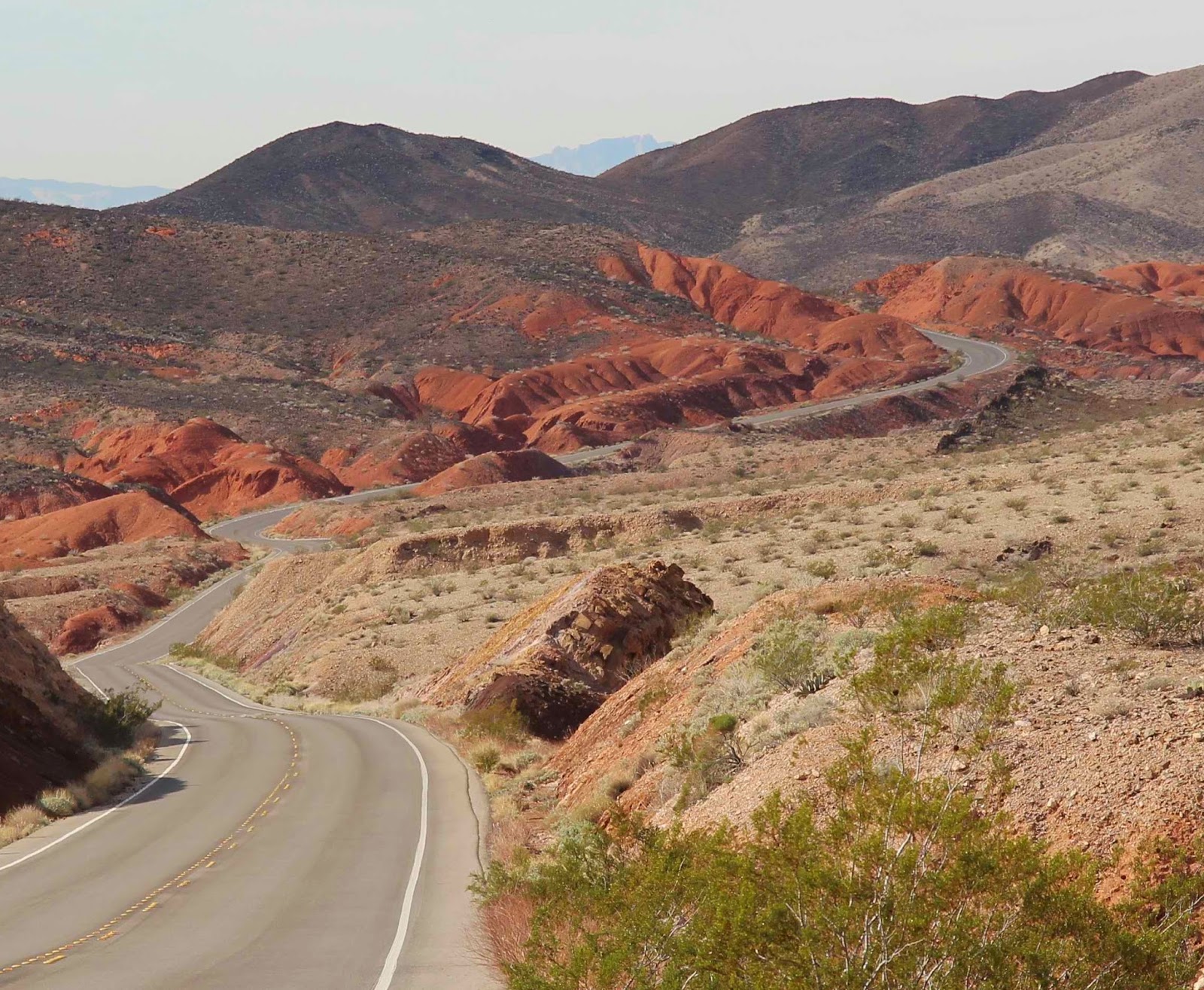 A lookout on State road 169, North Las Vegas is 20 miles past the furthest range of hills