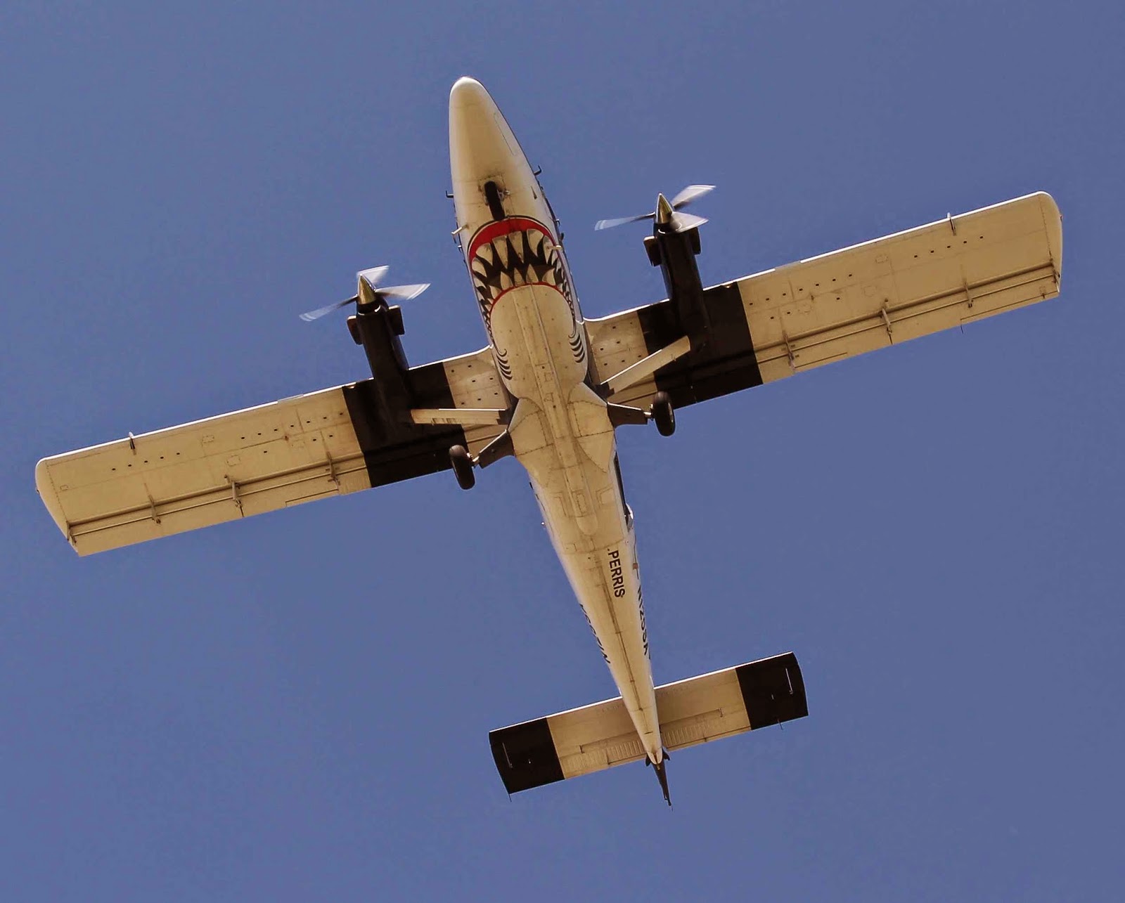 A friend from the Invasion saw the picture of the otter taxiing past my window and commented how much she liked the Shark painted on the side. The next day as I walked out to the plane I viewed it in a whole new light, and this morning I walked out to the end of the runway to see if I could get some good pictures. I don't know if the pilot saw me there or not, but either way, I have a pretty good idea how Roy felt when that shark came bearing down on him.