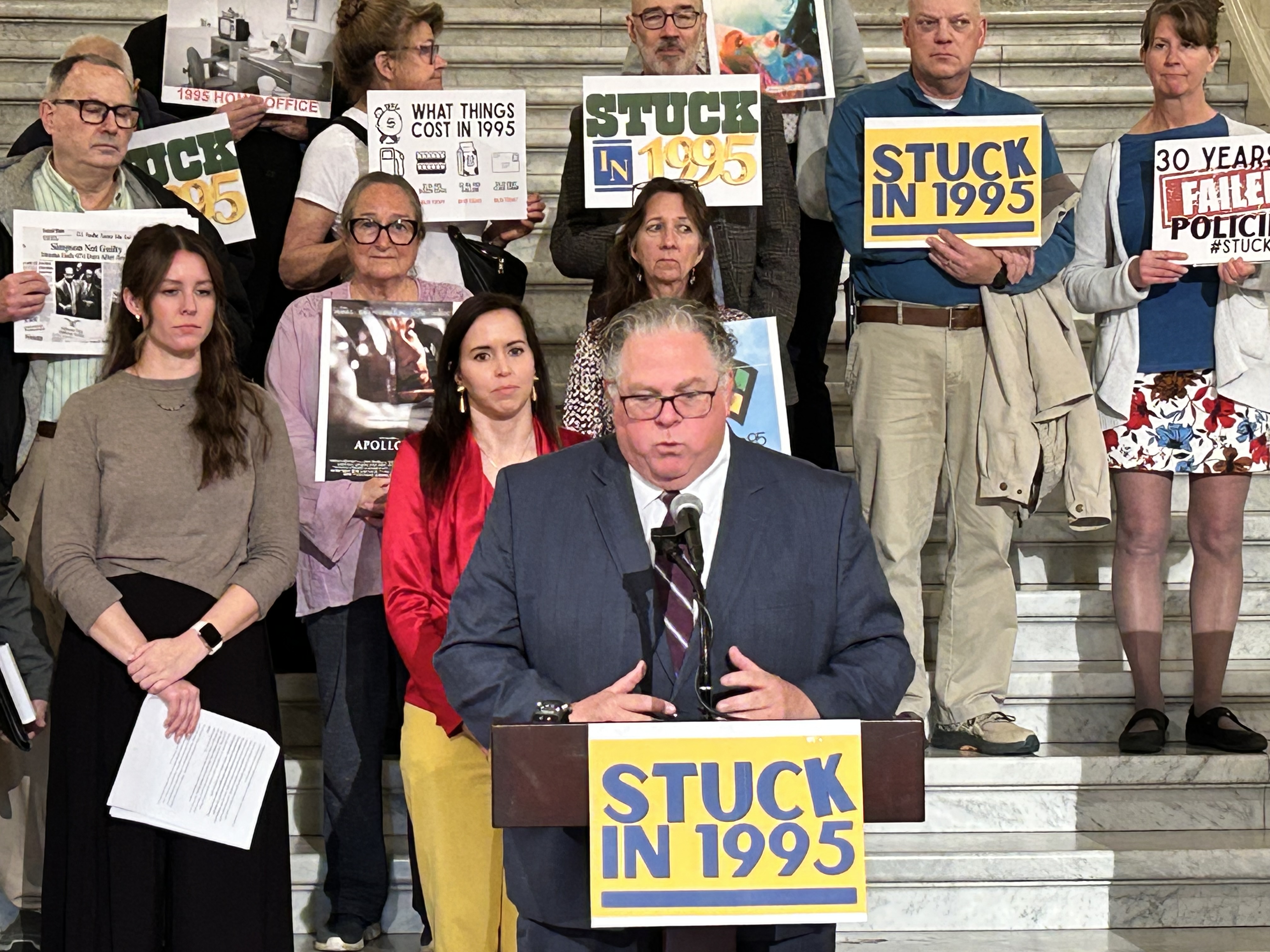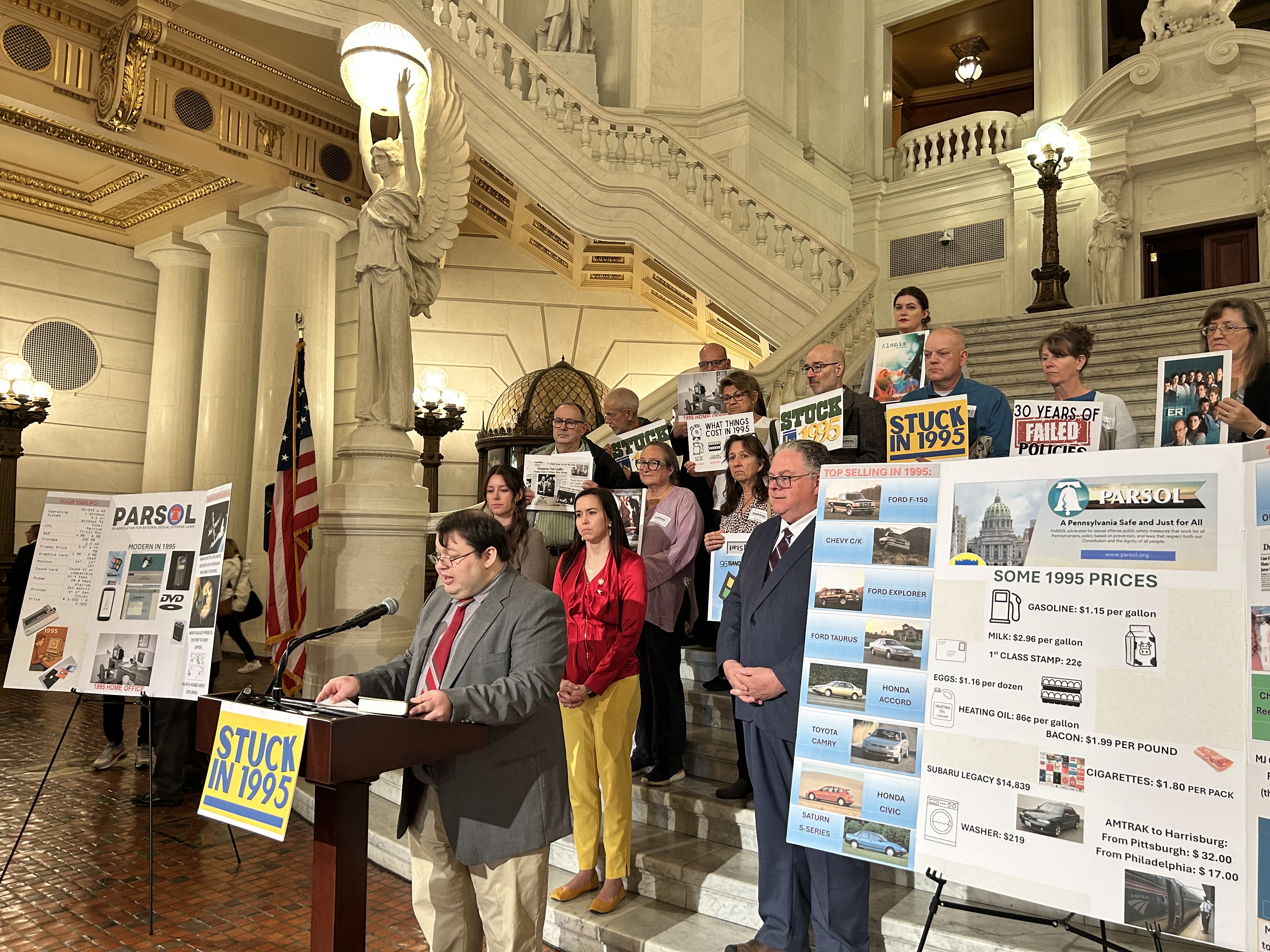 remarked Robert Ciccinelli (Havertown), PARSOL board member, who opened the event while advocates held signs showing nostalgia from that year including props from the era including the O.J. Simpson verdict headline news, a poster from the hit 90’s TV show “ER”, the dial-up internet modem, a 22-cent postage stamp, and the floppy disk drive.