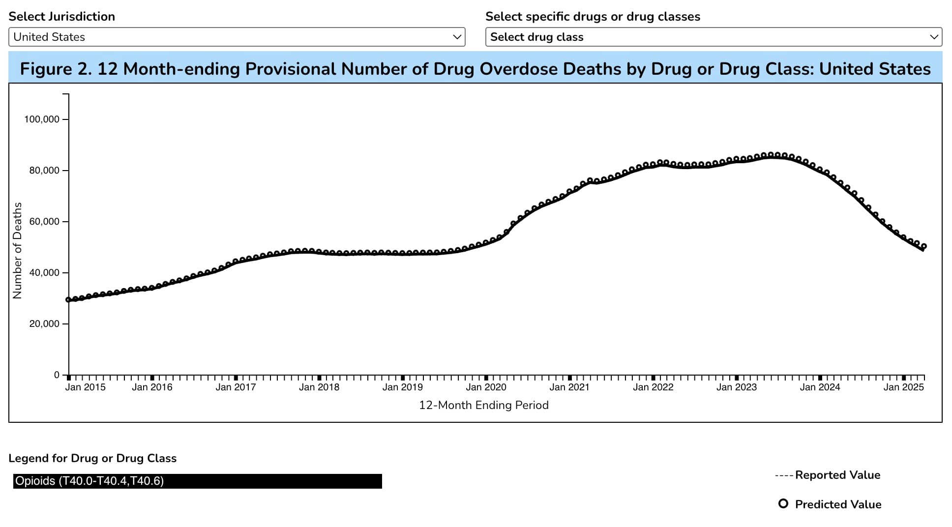 While there may be no correlation, it is notable that Centers for Disease Control and Prevention (CDC) data similarly show opioid overdose deaths in the United States began a roughly 40 percent decline in mid-2023.