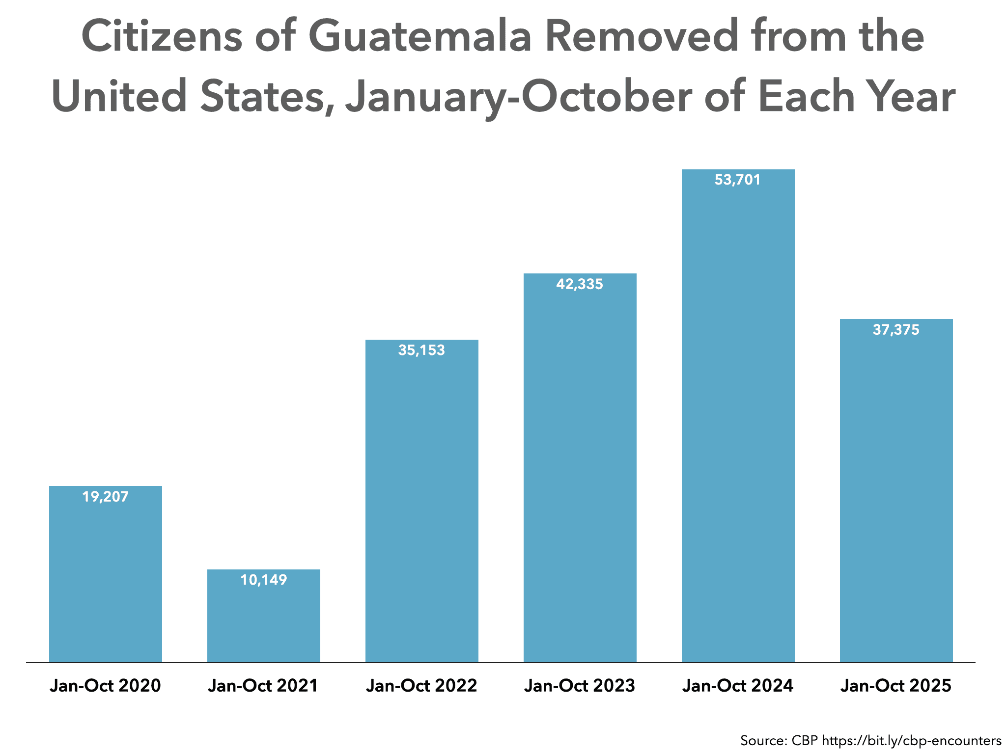 This is actually 30 percent fewer than the number of deportations to Guatemala through October 2024, and 12 percent fewer than through October 2023.