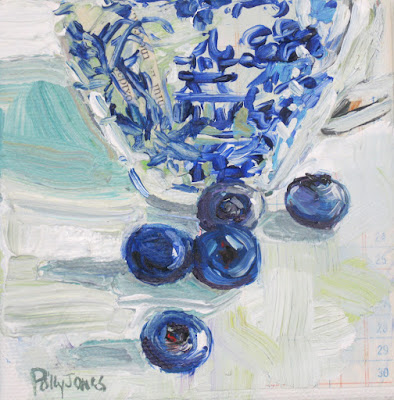 [Small Wonders Daily Paintings by Polly Jones] Indian Blankets and Blueberries original paintings by Polly Jones