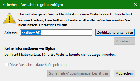 verschlüsselte Verbindung eingestellt, Thunderbird kann aber das