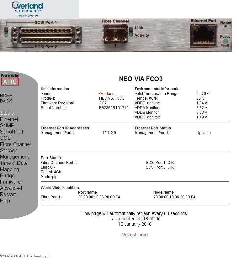 >>> "Adapter" zusätzlich eine Atto 2390 FC/SCSI-Bridge