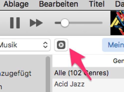 > >> Es soll einen Button "oben links" in iTunes geben. Den gibt es in