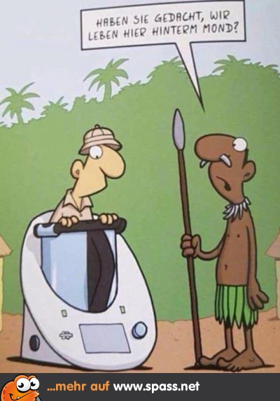 >> Knochen) und einem Weißen mit Tropenhelm, der im Kochtopf schmort habe