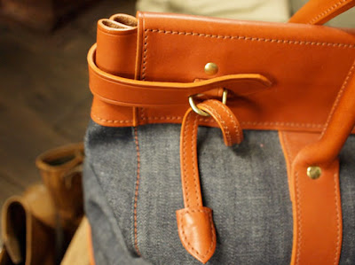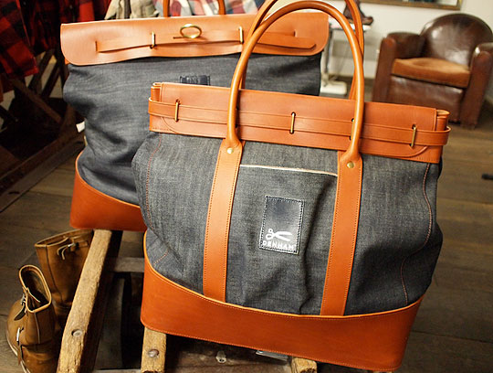 These are new denim bags by Denham. Inspired by the classic Hérmes bag, Denham created these with selvedge denim and thick vegetable tanned leather. I love it. More shots of the beautiful bags after the jump.