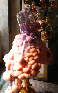 I could not wait for the "Worst in Show" category that is usually at the bottom of my posts. We passed by a perfumier who it appears, also sells powder puffs in various colors. Pictured above, a mannequin dressed in those powder puffs.