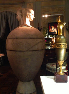 We are about a half-block from rue Faubourg Saint Honore, home to some of the worlds biggest fashion houses, sumptuous French antiquaries, fine art dealers, the Elysee Palace and of course Le Bristol Hotel. Above is a pair of carved marble... er, ugh, not sure what they are, but they were about 6ft. high, and 4ft. diameter, and truly beautiful whatever they are.